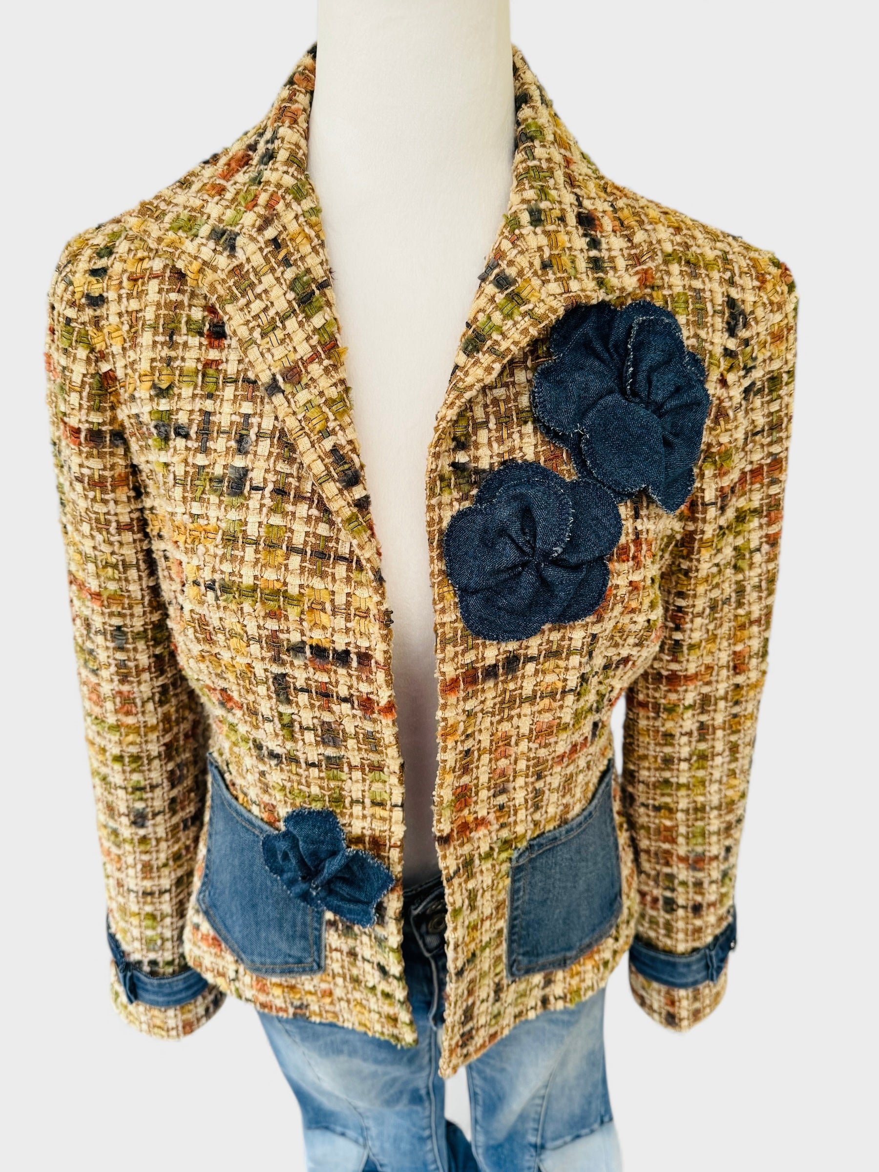 Denim & Tweed Upcycled blazer with Denim Blooms